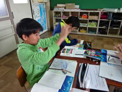 言葉がおもしろく,様々な情景を思い浮かべられる「やまなし」。たくさんあるすぐれた表現や物語に描かれた世界を感じ取っていたようです。