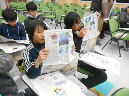 午後からは,朝日新聞京都工場へ!まずは,その日の朝日小学生新聞を1人1部いただき,じっくり読み始める子どもたちでした。5年生になってから,新聞スピーチやスクラップ活動などお通して,新聞とふれ合う機会も増え,興味をもった記事を見つけるのも早くなりました。「こんなことが載ってるよ!」「どこどこ?」と,おすすめの記事を伝え合う姿も見られました。