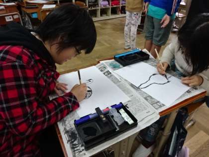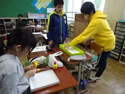 総合的な学習「伝統文化を探ろう!」では,調べたことを5年生に伝えようとまとめたり,練習したりしています。