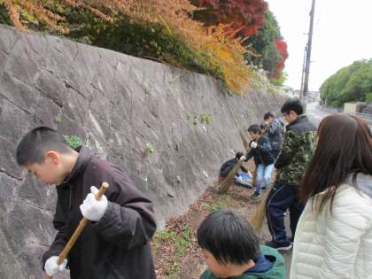 今日は西陵中学校3組の先輩たちと学校周りの美化活動を行いました。