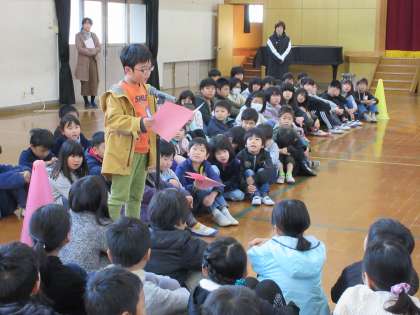 児童集会で,先週校長先生のお話を聞いて考えたことを発表しました。どの学年の発表も,すばらしかったです。発表を聞いた後,手を挙げて友達の発表から考えたことをお話する時間がありました。たくさんの人がいる前でも,少しずつ発表することに慣れてきています。