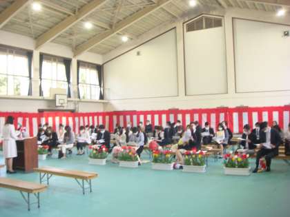 今年度の入学式は,いろいろと考えさせていただき,3密条件が同時に重ならないようにいたしました。出入口に消毒液。会場の窓を開ける。在校生は出席しない。長椅子一脚に2人が座る。