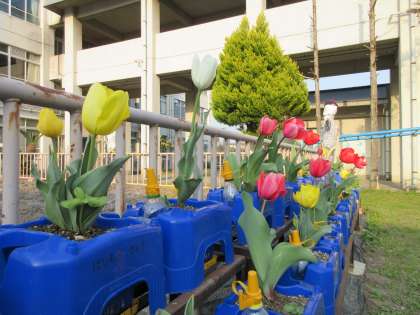 進級おめでとうございます。校庭の桜も中庭のチューリップも,新学期を待ちかまえていたかのよう満開です。学校園で育てていた麦もすくすくと背を伸ばし,2年生のみんなに会えるを待っていました。明日からまたしばらく学校がお休みです。健康に気をつけて元気にすごしてくださいね。