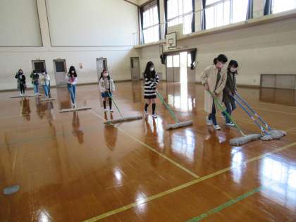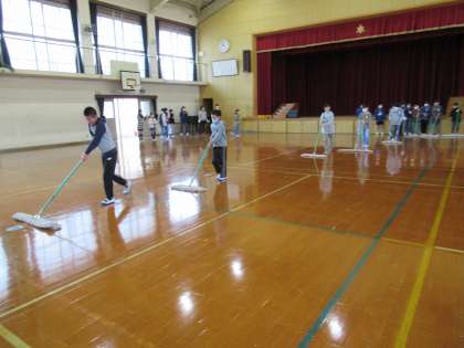 みなさんが掃除してくれた体育館は今も床が輝いています!最高学年としての最初の仕事もばっちりでしたよ!!