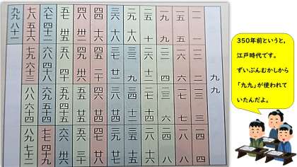 こんなにむかしから九九の表が使われてきたのですね。