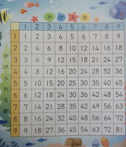 下の表は,今の九九の表です。