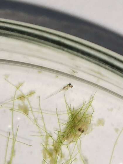 孵化したばかりの赤ちゃんメダカが,シャーレの中のどこにいるか分かりますか?