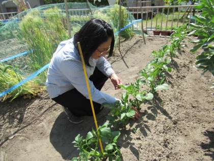 天気のいい日が続き,ジャガイモの芽もぐんぐん成長しています。植物に日光が当たると,どんなものができるのか・・・早く実験してなぞを解明したいですね!!