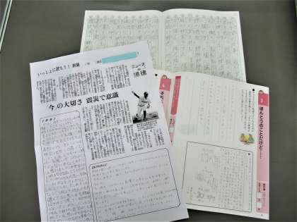 とめ・はね・はらいをしっかり書いた丁寧な漢字ノートに自分の考えをぎっしり書いた「いっしょに読もう新聞」,文章だけではなく図や絵で自分の考えを表現している道徳ノート。どれもばっちりです!!