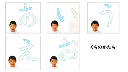 「あ」の口,「い」の口,「う」の口,「え」の口,「お」の口と,音によって口の形がちがいます。口の形を意識して声を出すと,伝えたいことが,相手にはっきりと伝わります。
