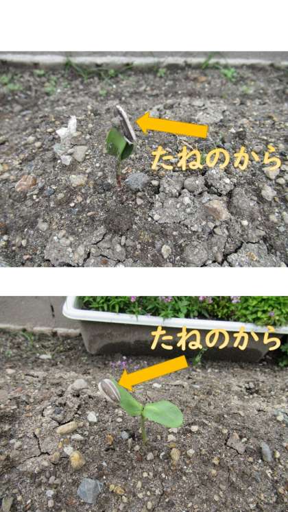 ヒマワリは,いくつかの芽に「たねのから」がついていました。