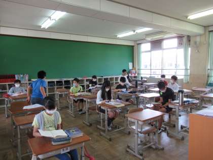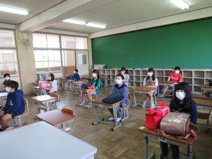 今日は6年生の学習相談日でした。課題をもって,たくさんの子どもたちが学校に来てくれました。久しぶりに会う友達に,満面の笑みで話しかける子,少しテレている子,近づきたいけど我慢している子,・・・そんな様子を見ているだけでも,とてもかわいくて思わずこちらも笑顔になりました。今日は2つの教室に分かれて過ごしました。初めての経験に子どもたちは戸惑いながらも,話をしっかりと聞き,行動することができていました。さすがです!