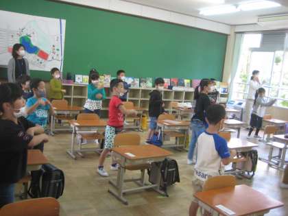 みじかい時間でしたが,学しゅうプリントのたしかめやおなおしをしました。その後とょしつへ行って,本をかりました。さよならの前には,みんなでパプリカダンスをおどって体をほぐして,すっきりしました。あっという間の45分でした。ひさしぶりに2年生のみんなの元気なすがたを見て,あんしんしました。学校のはじまりにむけて,きそく正しく生かつをして,元気にすごしてくださいね!
