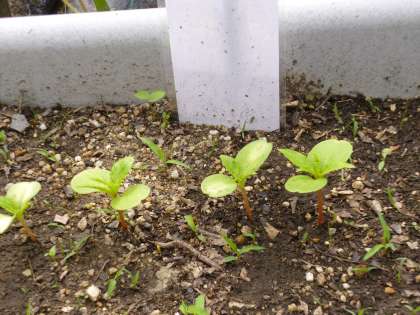 22日(金)に「まびき」した「ほうせんか」の葉が4枚に増え,茎も少し太くなっていました。じょうぶに大きく育っています。