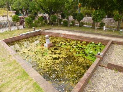 学校の正門を入って,すぐ左側には「かんさついけ」があります。「かんさついけ」には,あめんぼ,やご,めだか,かえるなどのいきものがいます。すいれんの花もさいています。学校がはじまったら,さがしてみましょう。