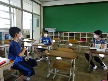と言っていた子も友達と話すことによって,自分の学習がさらに深まったようでした。教科書やノートを使って自分で進めていく学習でしたが,友達と話すことによって学習したことを振り返ることもできたようですね。