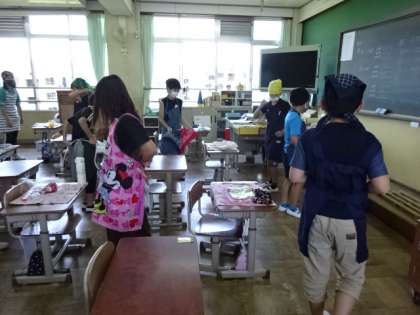今週から給食が始まりました。今までとは違う給食の時間。手洗いを念入りにすること,一列に並んで給食室へ行ったり,給食を運んだりすること,配膳中は一部の人しか歩けないことなどいろいろなことが違っていました。最も違っていたのは,給食を食べる時です。全員前を向いて,静かに食べていた子ども達。少し,寂しい感じがしていたのではないでしょうか。