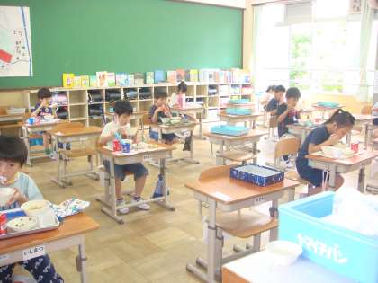 どの学年の子どもたちも静かにおしゃべりなしでいただいています。