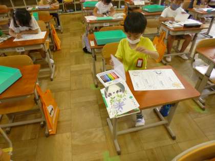 今日はBはんの登校日。国語の時間には,12日(金)に計画している「どうぞよろしくの会」に向けて,名刺づくりをしました。12日は1年生全員がそろう予定です。「どうぞよろしくの会」でお友達を増やしてほしいと思っています。