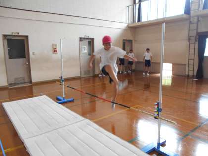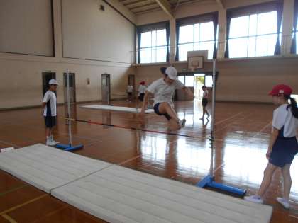 体育科で「走り高跳び」の学習に入りました。今日はまず,ふみきる足をどちらにするかや助走の歩数などを決めていきました。だんだんと感覚をつかめてきた子どもたち。次は1cmでも高くとぶためには,どうしたらよいかをアドバイスし合いながら,学習を進めていました。