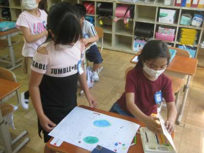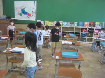 自分の家のまわりにあるものをかいて,地図をつくっています。