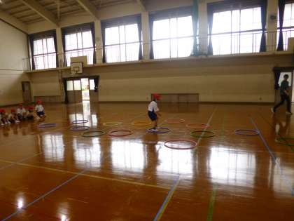 体育は,B班の子どもたちにとっても初めての学習。残念ながら今日は雨だったので,体育館での体育となりましたが,子どもたちは「体じゃんけん」や「島わたり」を力いっぱい楽しみながら,がんばることができました。