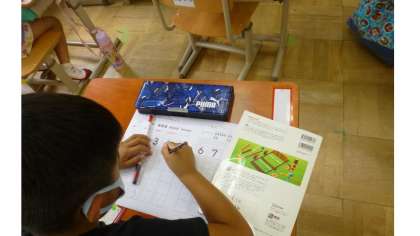 算数は1から5までの数の練習です。ていねいにがんばりました。
