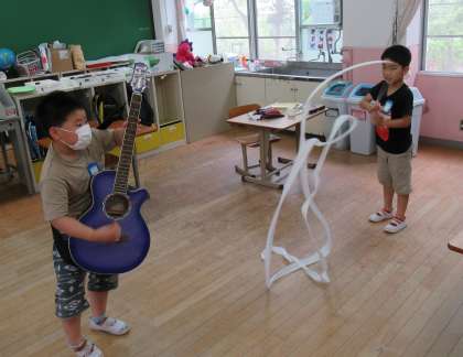 昼休みは,オルガン,ギター,新体操のリボン,標本づくりなど,各々が楽しく過ごしていました。