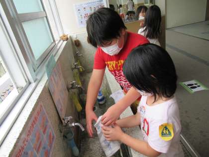 今日から,そうじが始まりました。6年生は1年生にそうじのやり方も教えます。最初は,何をどう教えたらいいのか戸惑っていた子どもたちでしたが,見本を見せてみたり,言葉で説明してみたり,それでもうまくいかないときは,手取り足取り教えたり・・・6年生もとてもいい勉強になりました。明日も待っててね,1年生!!