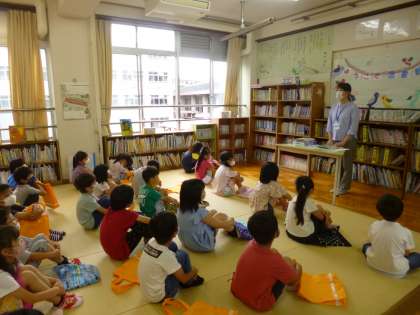 図書館司書の石津先生と図書担当の滋野井先生から,図書館の使い方を教えてもらいました。本は心の栄養。これからたくさん本を読んで,心も大きく育ってほしいと思います。