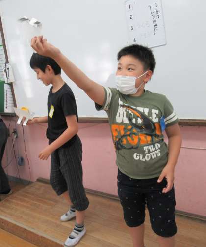 「猫は高いところから落ちても,さかさに落ちても,うまくひっくり返って着地する。」という話はよく知られています。図工の時間では,そんな猫のように,上手に着地する紙猫を作りました。