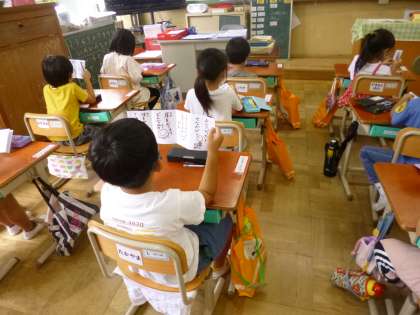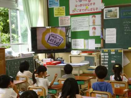 学校が再開して1か月。学校生活にもずいぶん慣れてきた1年生ですが,給食に苦手なものが出てきたときは,食べるのに苦戦している姿も見られます。そこで,今日は,栄養教諭の宮本先生から,苦手なものが出てきてもがんばって食べられるようになる「まほうのたべかた」を教えてもらいました。