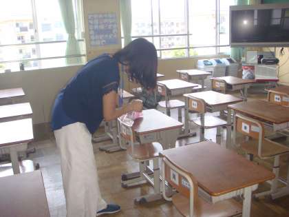 みなさんを迎えるために,まずは,教職員でしっかりと校舎を消毒しました。