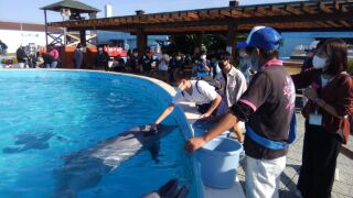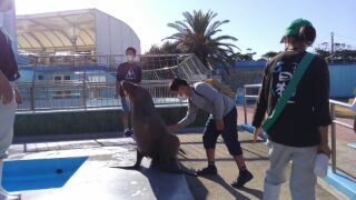 アザラシの幸(こう)ちゃん,アシカのぽぽちゃん,そしてイルカたち。