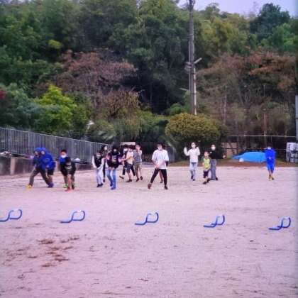 5年生だけでしていた朝ランニング。いつもなら6年生と一緒に準備するのですが,自分達だけでしなければなりませんでした。いつものアップとは少し違う感じのようでした。走る時もいつもなら,6年生についていこうとしているのですが,目標にしている6年生が前にはいません。自分で目標をもって走っていたようですが,やっぱりいつもと違うように感じていたのではないでしょうか。