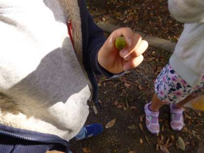 竹の里公園に,秋見つけの散歩に行きました。かわいいぼうし付きのどんぐりや,黄色にに色づいたいちょうのはっぱなど,秋の落とし物がたくさん見つかりました。