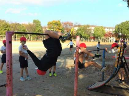 背も高くなったので,一番高い鉄棒で「こうもり振り降り」にたくさんの子が挑戦しました。他にも,「足掛け振り上がり」や「逆上がり」にもチャレンジしていました。