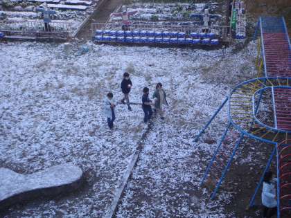 子どもたちは,朝から大はしゃぎです。素手で雪を固めているので,手がまっかっか!それでも楽しそうです。