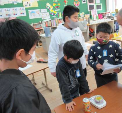 生活単元(2年)・理科(5・6年)では,「ころりん」の学習で,物の転がる速さがどんな属性に左右されるのかを実験を通して考えています。「缶ジュースのほうが重いから缶ジュースがはやい。」「同じ大きさだから同じ速さ。」などと自分なりに予想をして実験を楽しんでいました。