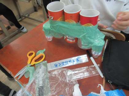 空き容器をつなげたり,飾りをつけたりして,素敵な小物入れを作っています。