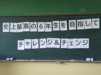 いよいよ6年1組のスタート!まずは,「先生からみんなへのメッセージがあります。今から1文字ずつ配るので,みんなで協力して,メッセージを完成させてくださいね!」と伝えました。さぁ,どうなるのかな・・・と思い見守っていると,あっという間に完成しました。子どもたちの団結力,行動力にまたまた驚かされました。「史上最高の6年生」を目指して,いろいろなことに「チャレンジ」し,よい方向に「チェンジ」しながら,1年間を全力で楽しみましょうね!!
