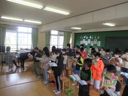 6年生になって初めての音楽の学習がありました。今年度も,志水先生に教えていただきます。教科書を開き,6年生ではどんな学習をするのか見通しをもちました。最後はボディパーカッションにも挑戦!今年度も,音楽で心を豊かにしてほしいと思います。