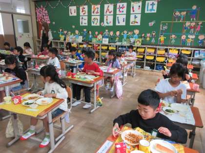 1年 きゅうしょくは おいしいね!