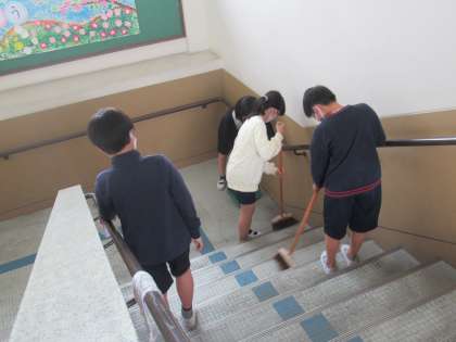 給食に引き続き,掃除活動も始まりました。担当の場所を手分けをしながらきれいにします。ほうきではく子,雑巾がけをする子,草抜きをする子・・・自分たちで仕事を見つけ,積極的に動いていました!「自ら考え,行動する6年生」を目指しましょう!