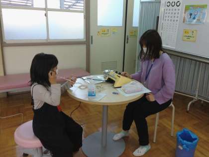 3時間目は聴力検査でした。保健室の先生に「静かにしないと聞こえないから気をつけてね。」と言われたことをよく聞いて,子ども達は廊下を歩く時も,保健室に入った後も静かに自分の順番を待つことができました。