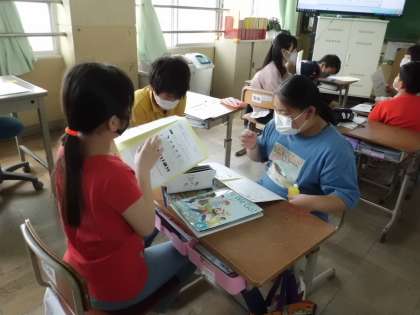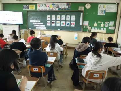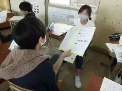 2時間目の外国語の時間に,「出身地やできることをたずねる言い方を知ろう。」というめあてで学習をしました。Let's try.では,2つのヒントから答えを考え出し,さらに「Where are you from?」と発話することにより,3つ目のヒントを得た子ども達は,「ああ!これだ!!」と素早く,「Are you〜?」大正解です!!困った時は,ペアの友達同士で教え合い,楽しんで活動することができました♪