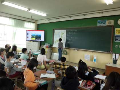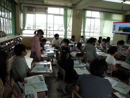 5年生の社会科の時間に,山地や平地の特色や広がりがどうなっているのかについて調べました。「ぼくは,山地や山脈は日本の国土の中心に集まっていると思います。なぜなら・・・。」「私は,平野は海に面していることに気が付きました。ここに注目してください。」地図や資料から色々なことを読み取り,自分なりに考えたことをさらにみんなに発信し,学びを深めていました。自身をもって伝える姿,さすが竹の里小学校の高学年です!!
