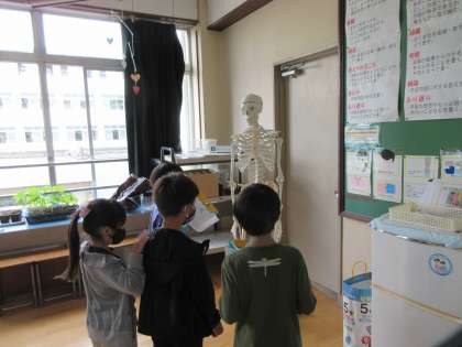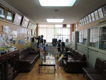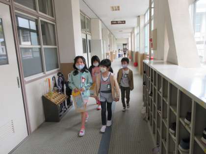 2年生にリードしてもらって学校の中をたんけんしました。どのグループもたんけんの約束をしっかり守って活動できました。校長先生のお話も,いっしょうけんめい聞いています。いつもは入れないところも見せていただいて,学校の中の様子がたくさん分かることができました。