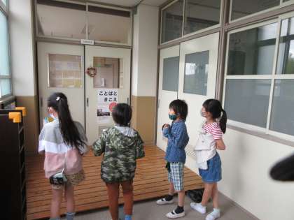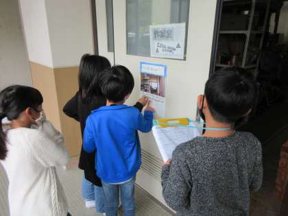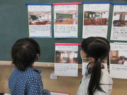「ここでは,どんなべんきょうをするのかな。」「このおへやは,どんなしごとをするのかな。」 たんけんが終わった後は,おしえてくださいカードに,しりたいことを書きました。2年生やそのお部屋の先生に渡して,お返事をもらいます。