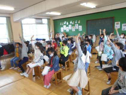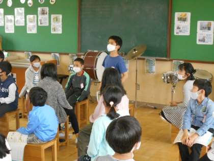 今日は,「小さな約束」という曲を聴き,感じとったことを伝え合いました。悲しい曲,少し寂しい曲,力強い曲など感じたことをたくさん交流することができました。同じ曲でも,一人一人感じ方が違うことに気づくことができました。